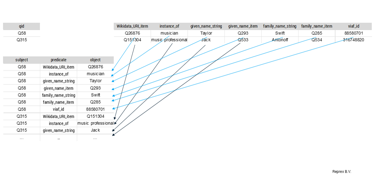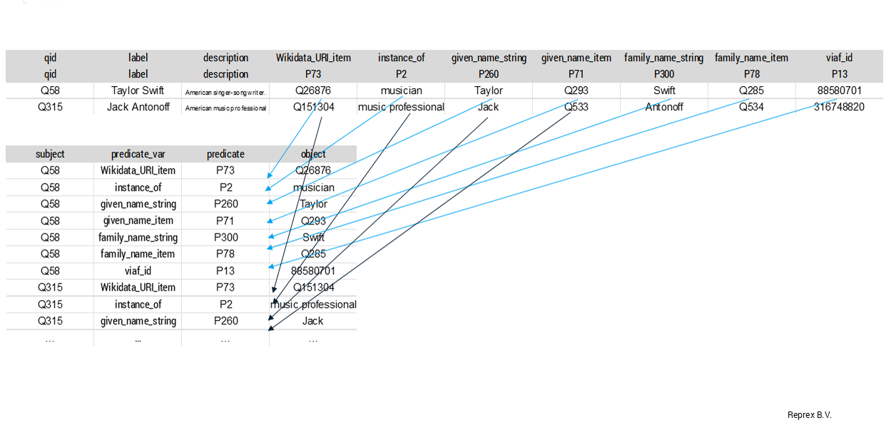 Applying dual headings can help to map your column variables into Wikibase properties easily while pivotting into longer format.